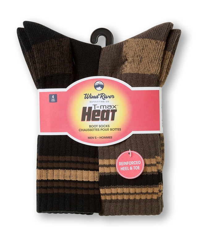 For cold-weather outdoor adventures, you need superior protection for your feet. You'll get it with these thermal boot socks from WindRiver. Made with our signature T-MAX HEAT® technology, these socks provide improved heat retention and temperature regulation. Heels and toes are durably reinforced and smooth toes prevent irritation. This pack includes four pairs, giving you spares for your upcoming excursions.
