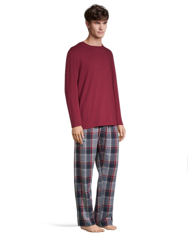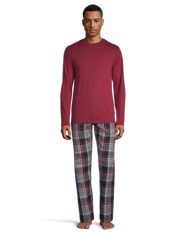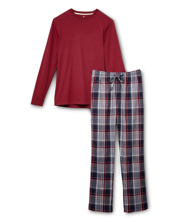 From our WindRiver Heritage Collection, this pajama set is perfect for lounging around at home in the cooler months. A classic tee-style top is coupled with cozy plaid flannel pants with an easy pull-on elastic waist.