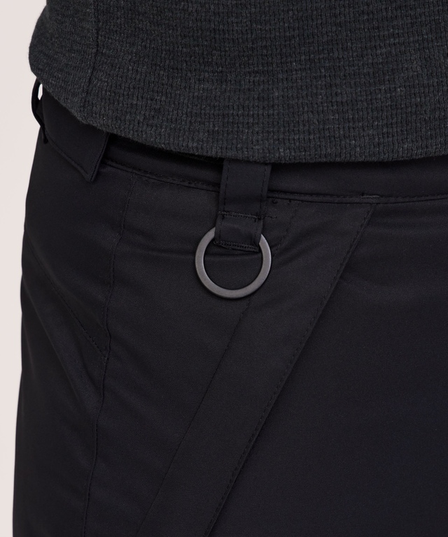 Waistband with Adjustable Velcro Tabs for Precise Fit Adjustment. Includes belt loops and D-ring for ski pass or ID card