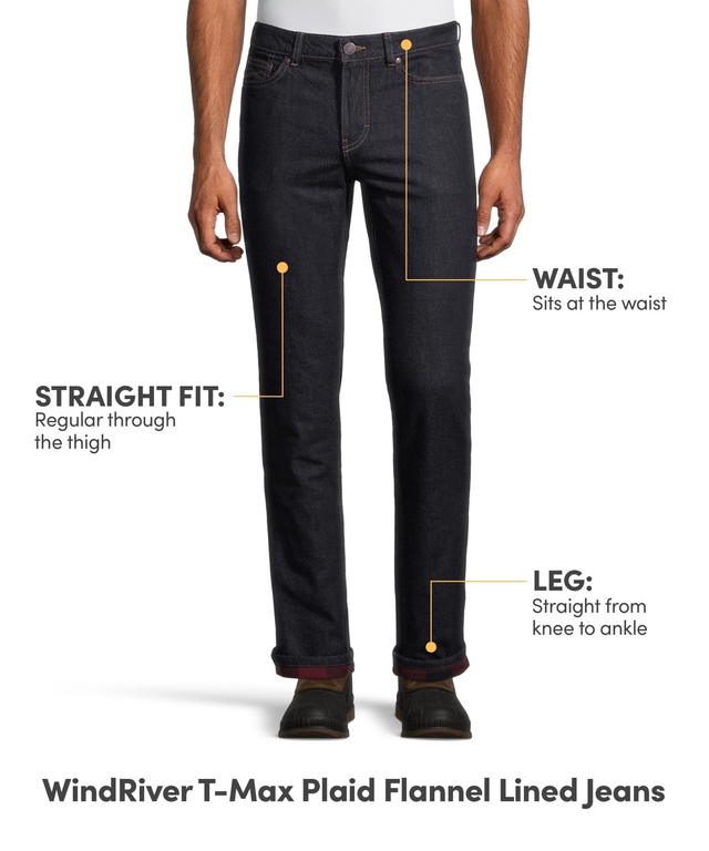 Featuring a soft plaid lining for extra warmth and comfort, these WindRiver jeans will be a key part of your cold weather wardrobe. The jeans are made with our T-MAX® insulation, which provides impressive heat retention while keeping the design remarkably lightweight. Typical jean features like five-pocket styling, fading and whiskering give these men’s jeans a timeless casual look that's ideal for everyday wear.