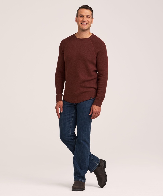 On cooler days, our WindRiver crewneck sweater will keep you comfy - it's made in a waffle knit pattern that captures heat naturally. The long-sleeve style features raglan sleeves for a looser underarm fit and a curved hem that elevates the sporty style.