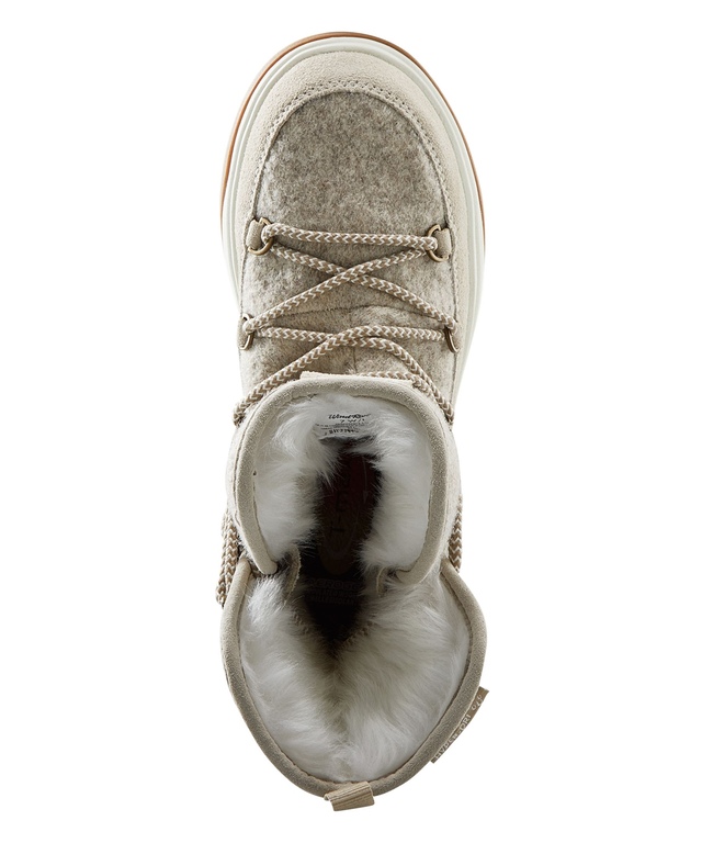 These have felted wool on the outside - warm and durable. The X-Ice sole is great on snow