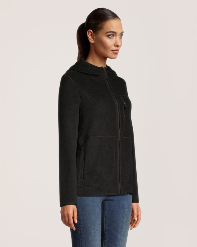 Ideal for cooler weather activities, our WindRiver fleece jacket keeps you warm and cozy. It zips up high to provide protection around the neck and you can pull up the hood when the temp drops low. This fleece jacket has several zippered pockets so you can travel hands free on your outdoor adventures.