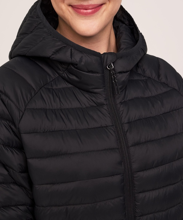 A: Thank you for reaching out with your question! The WindRiver Women's HD1 Packable Hooded Puffer Jacket is designed for comfort in cool conditions. We categorize our jackets into three warmth levels: Warm, Warmer, and Warmest , and this jacket falls under the "Warm" category as a great transitional weather solution. It features T-MAX® SPHERE INSULATION, a lightweight, water-resistant, and warm down alternative that helps keep you comfortable in cooler temperatures. Additionally, it includes HYPER-DRI® HD1 technology, making it water-repellent and breathable - perfect for staying dry in light rain and snow. I hope this helps!