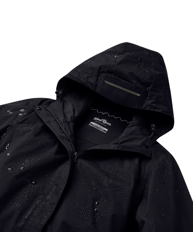 Keep dry in our WindRiver HD3 Downpour II rain jacket equipped with our best water protection technology. It has a Durable Water Repellent finish for even more resistance in wet conditions. Made in a tough ripstop fabric, this rain jacket has an adjustable hood and waist to give you the fit you need. And, since coats can sometimes cause overheating, this well-designed example features front and back vents to improve the airflow.