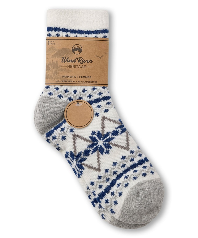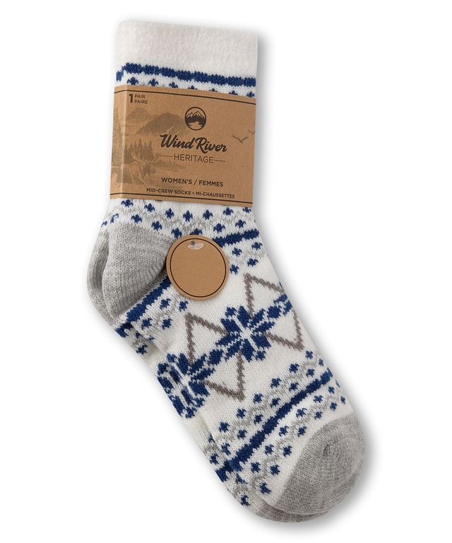 From our WindRiver Heritage collection, these snowflake-patterned socks are knitted in a double-weight yarn with a soft and cozy lining. Non-binding cuffs are ideal for those who suffer from leg inflammation, and anyone else who just wants comfort. These socks will keep you comfy in chilly conditions - after all, where else will you find snowflakes?