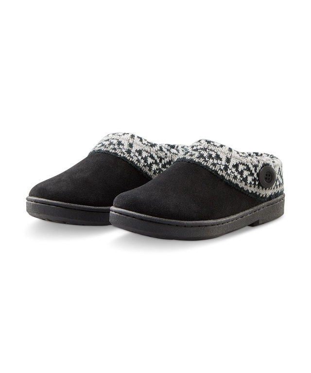 Slip into comfort this winter wearing our WindRiver clog-style slippers. Made in sturdy natural suede, these slippers have a cozy knitted collar and faux fur lining. Can be worn both indoors and out.