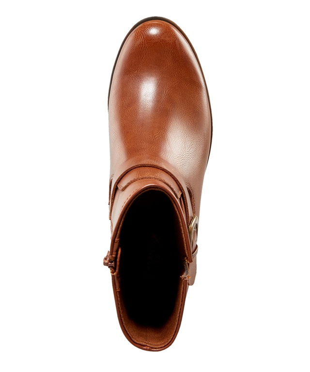 From Denver Hayes, these Edana boots have gold-tone buckles that highlight the wrap-around strap detail. Inside zippers make them easy to get on and off and flexible TPR outsoles make for light footfalls on hard surfaces.