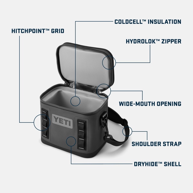 The YETI Hopper Flip 8 Soft Cooler is the perfect size for personal use when you're off adventuring. It's waterproof and features a leakproof zipper. ColdCell™ insulation keeps your snacks and drinks cold until it's time for you to take a break.